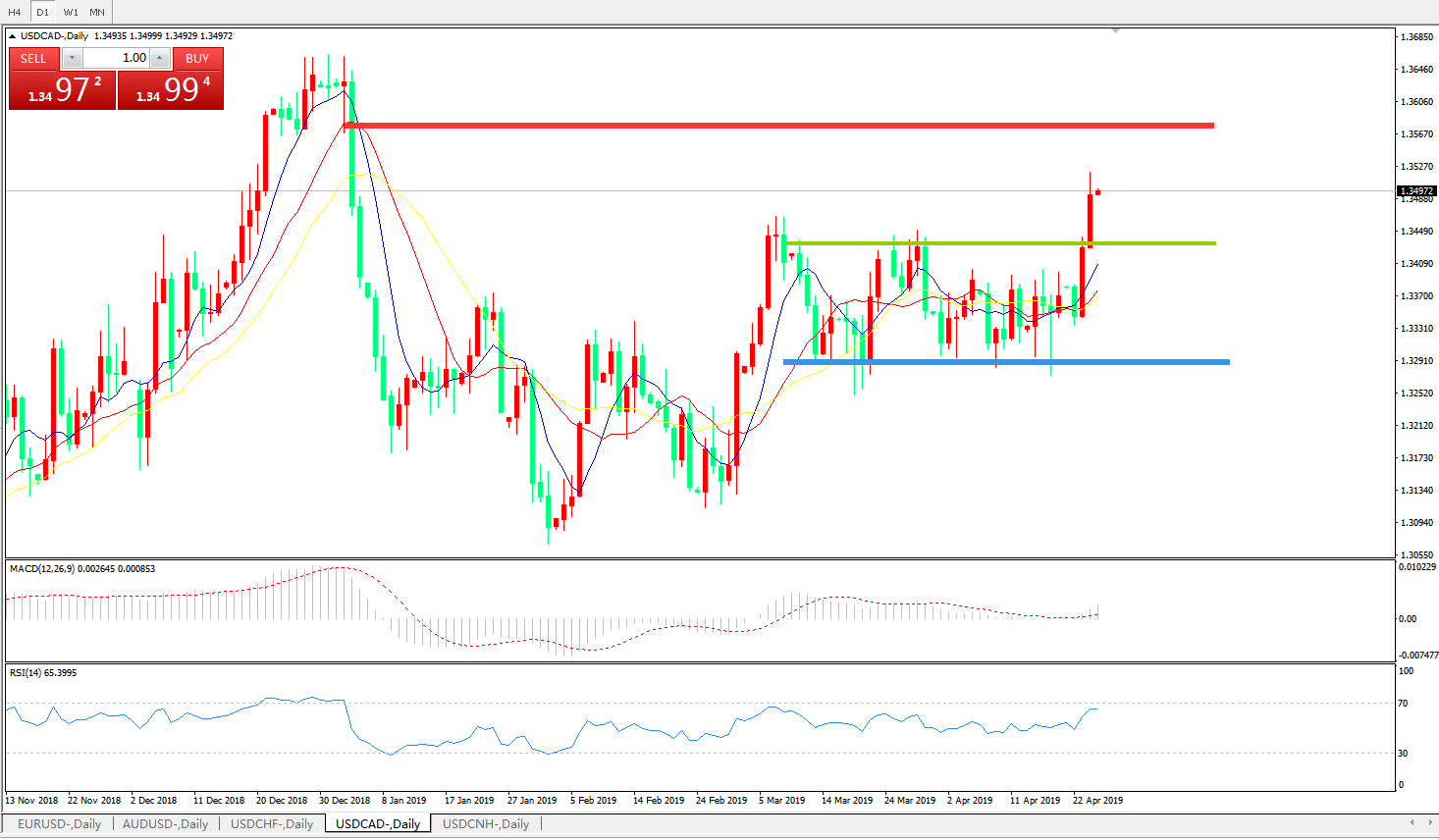 美元兑加元USDCAD 日线图: