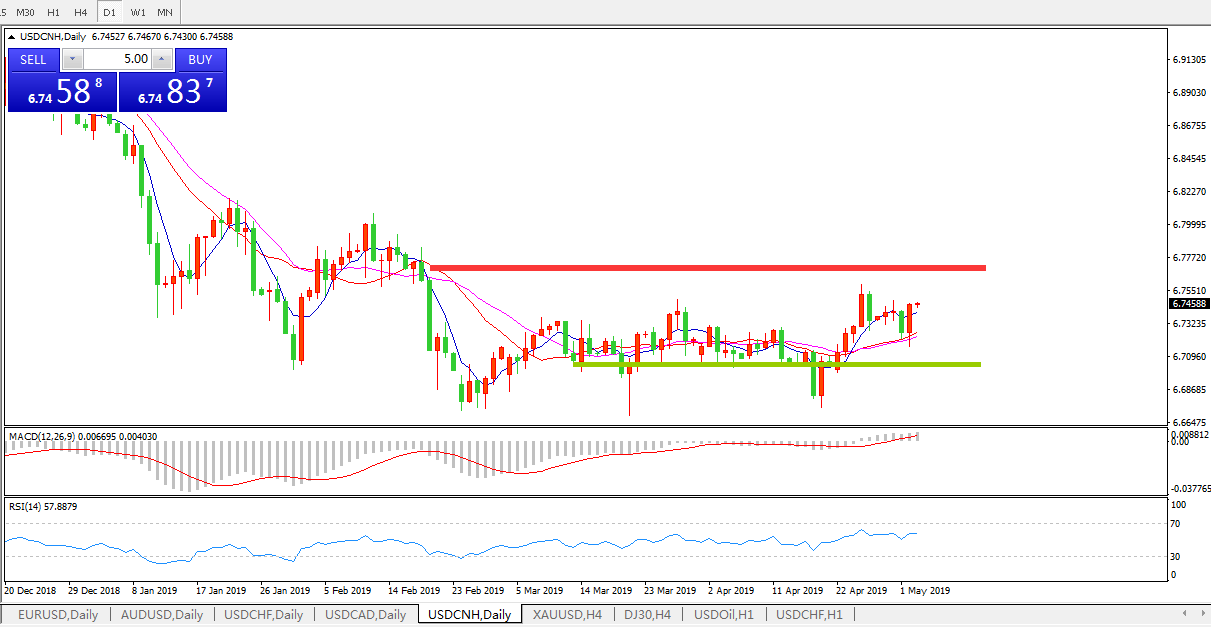 交易策略: 在6.6990之上,看涨,目标价位为6.7845,然后为6.8185。