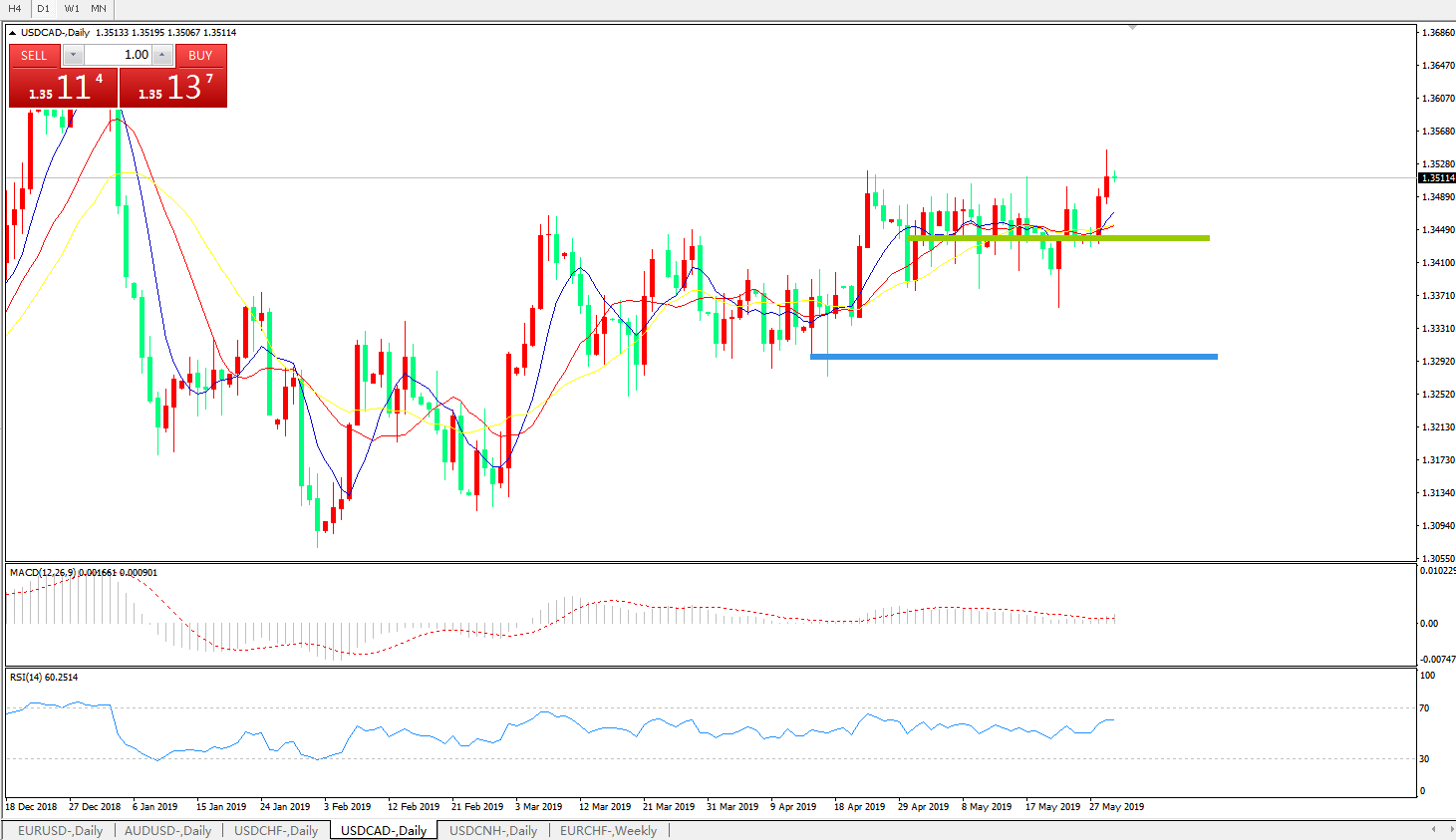 美元兑加元USDCAD 日线图: