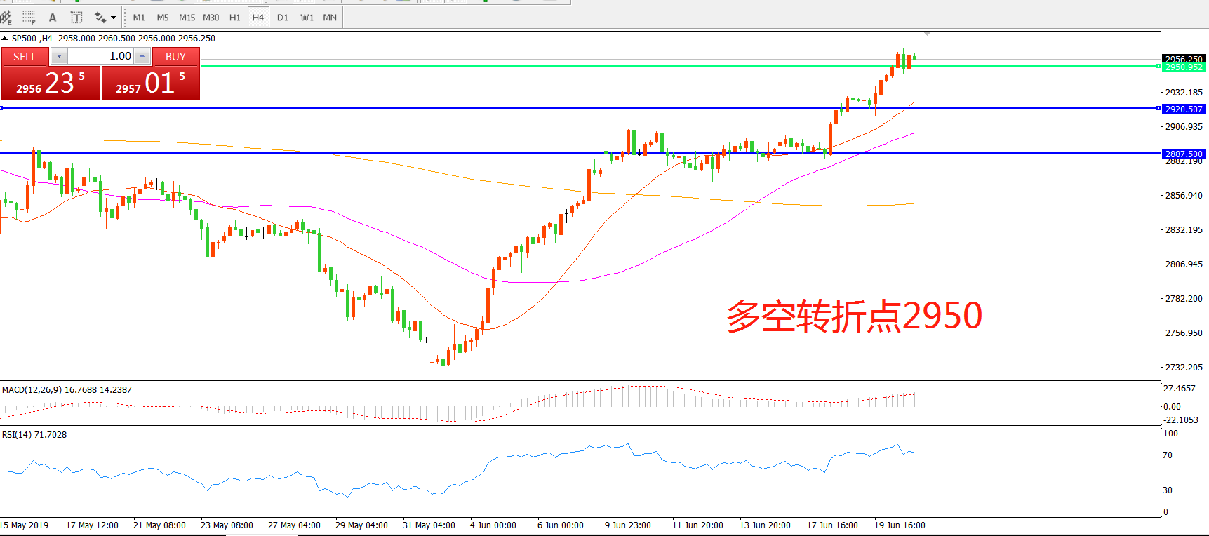 多空转折点:2950.50