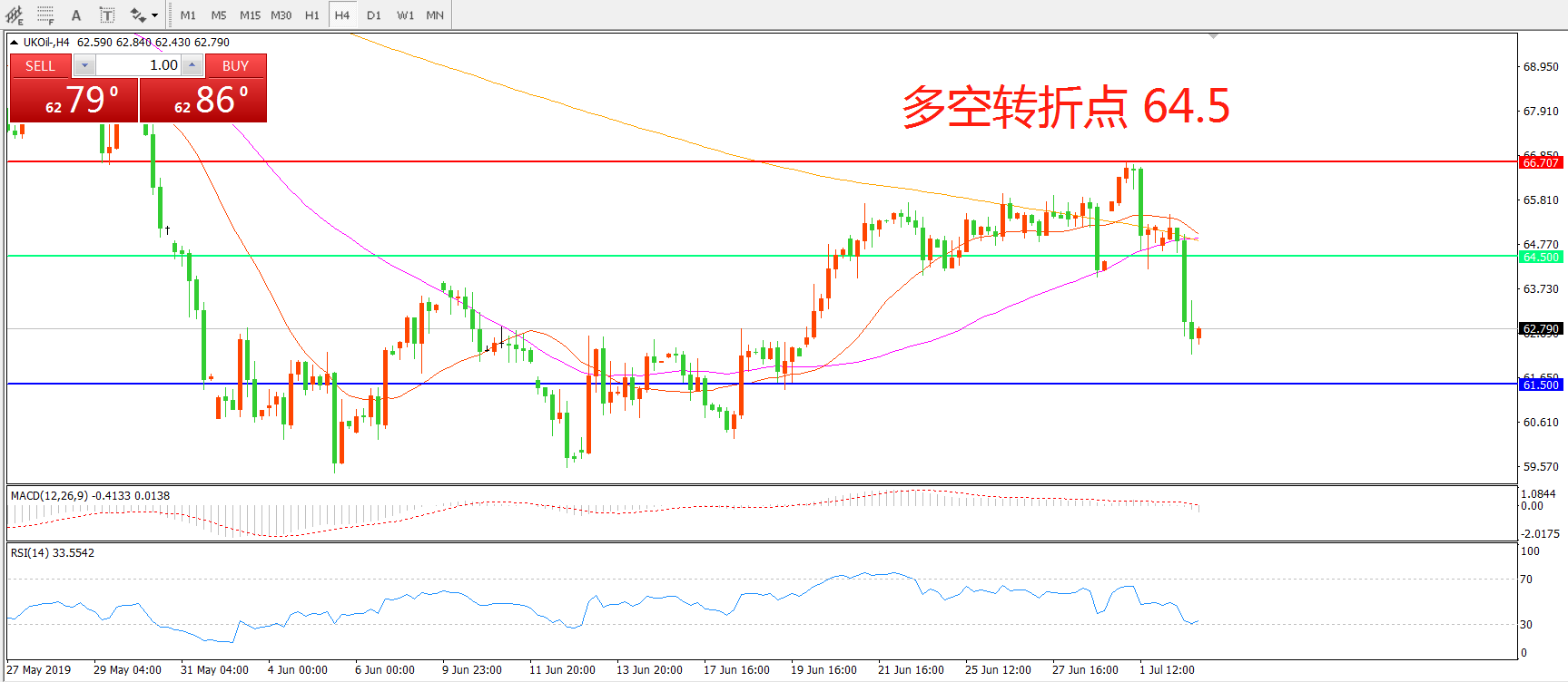 交易策略:在64.50之下看跌,目标61.50   59.50