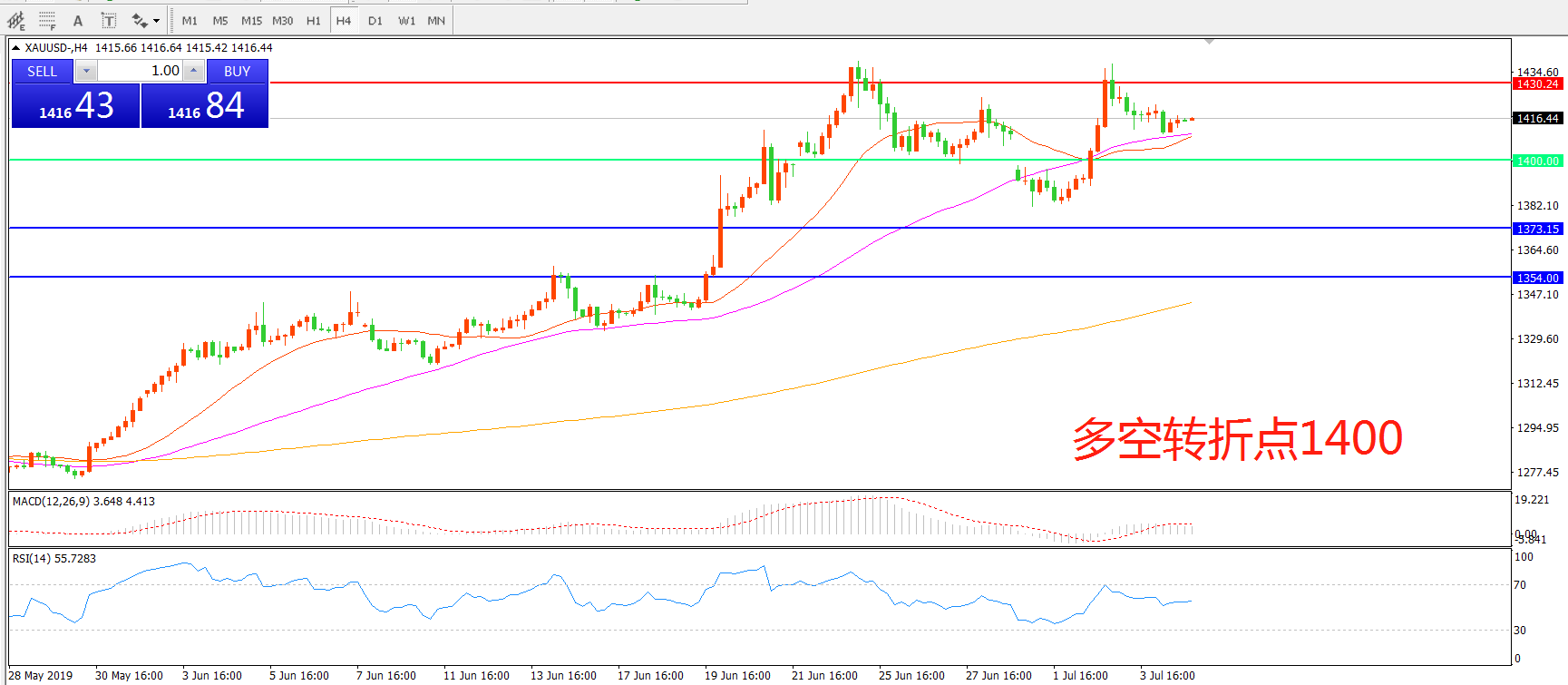 多空转折点:1400.00