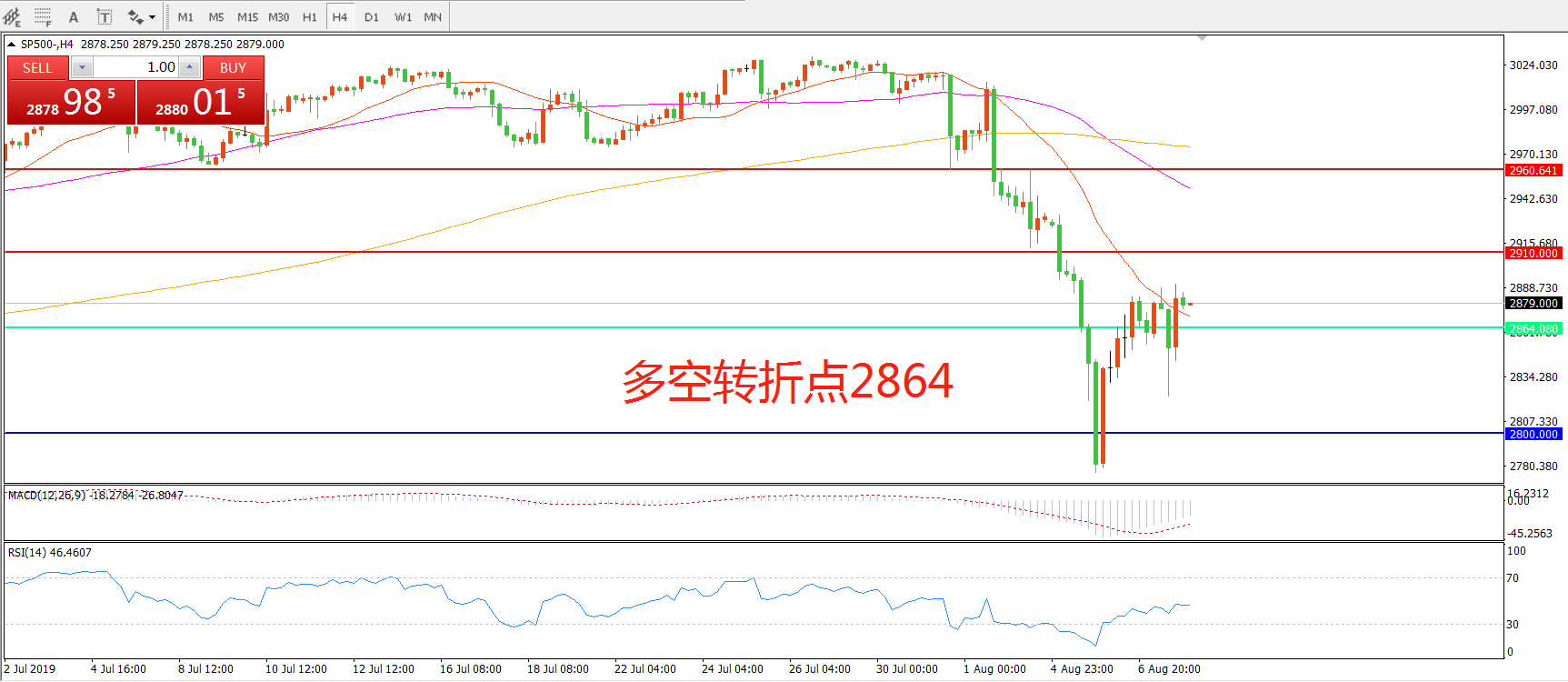 交易策略:在2864.00之下看跌,目标2800.00   2737.00