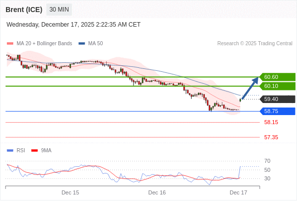 在 58.75 之上,看涨,目标价位为 60.10 ,然后为 60.60 。