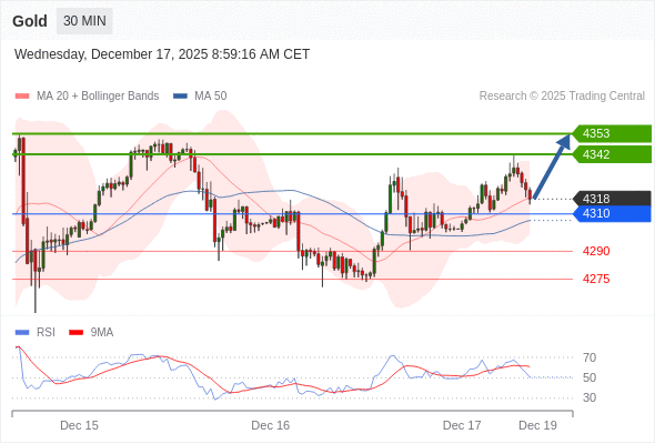 在 4310 之上,看涨,目标价位为 4342 ,然后为 4353 。