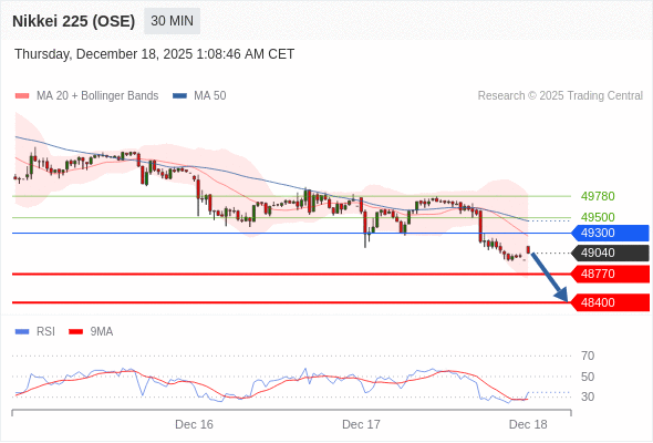在 49300 之下,看跌,目标价位为 48770 ,然后为 48400 。