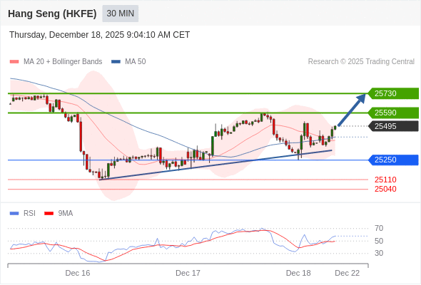在 25250 之上,看涨,目标价位为 25590 ,然后为 25730 。