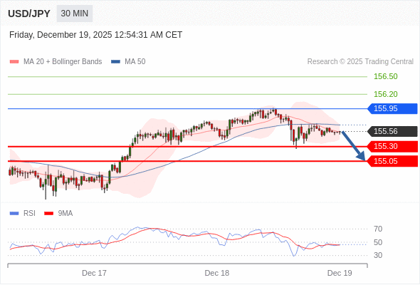 交易策略: 在 155.95 之下,看跌,目标价位为 155.30 ,然后为 155.05 。