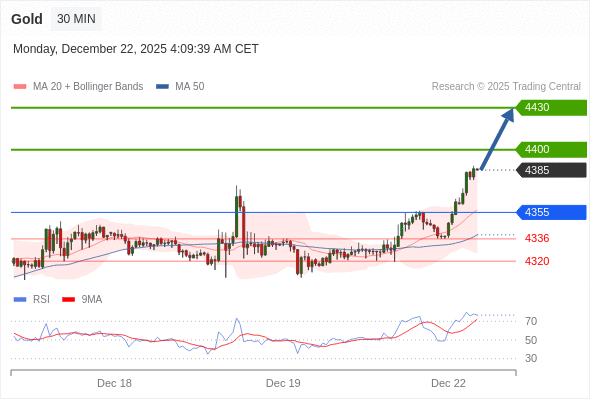 在 4355 之上,看涨,目标价位为 4400 ,然后为 4430 。