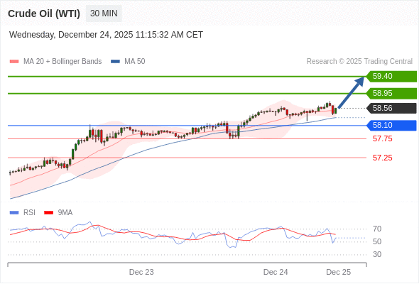 在 58.10 之上,看涨,目标价位为 58.95 ,然后为 59.40 。