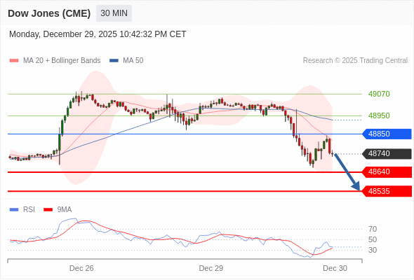 在 48850 之下,看跌,目标价位为 48640 ,然后为 48535 。