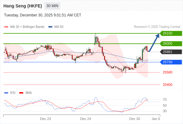 在 25730 之上,看涨,目标价位为 26000 ,然后为 26150 。