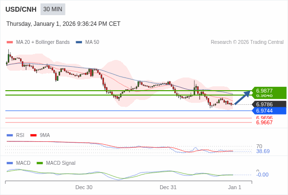 替代方案: 在6.9744以下,期待6.9696和6.9667。