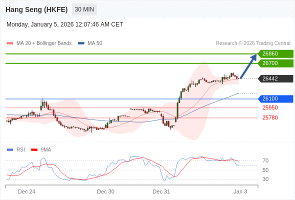 在 26100 之上,看涨,目标价位为 26700 ,然后为 26860 。