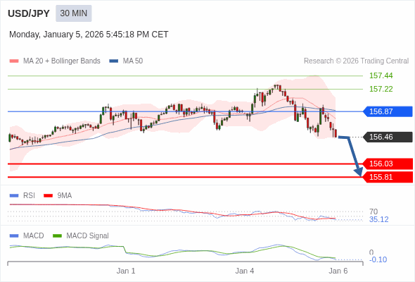 美元/日元 当日内 : 看跌,在 156.87 之下。