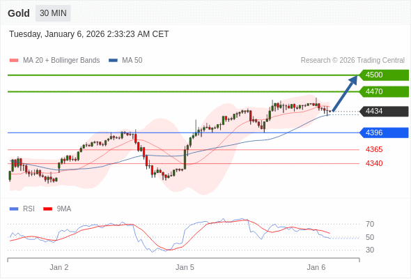 在 4396 之上,看涨,目标价位为 4470 ,然后为 4500 。