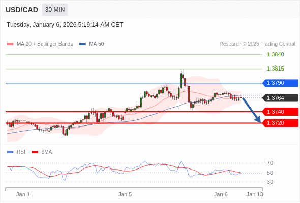 美元/加元 当日内: 期待1.3740。
