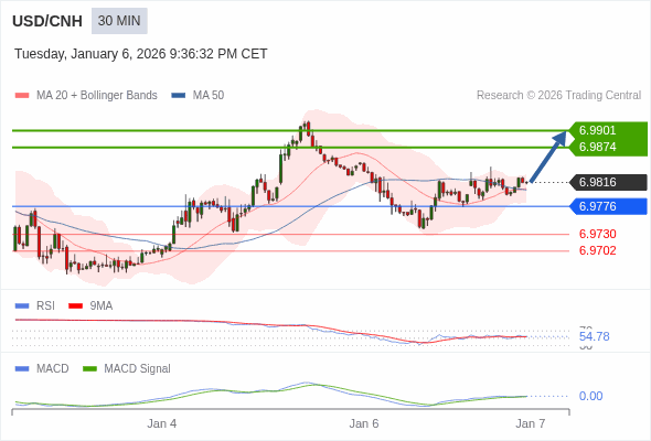 替代方案: 在6.9776以下,期待6.9730和6.9702。