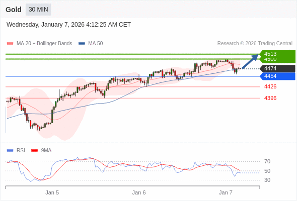 在 4454 之上,看涨,目标价位为 4500 ,然后为 4513 。