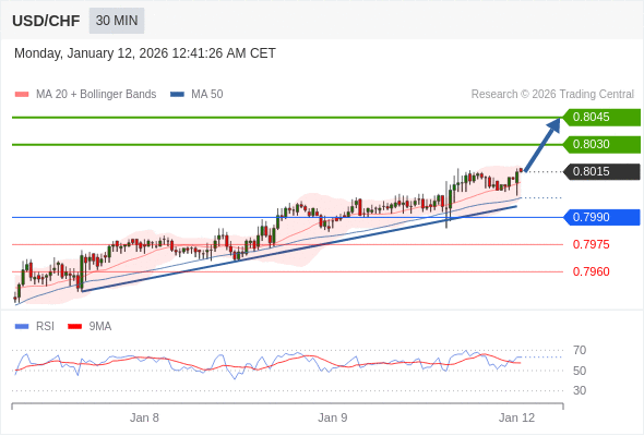 在 0.7990 之上,看涨,目标价位为 0.8030 ,然后为 0.8045 。