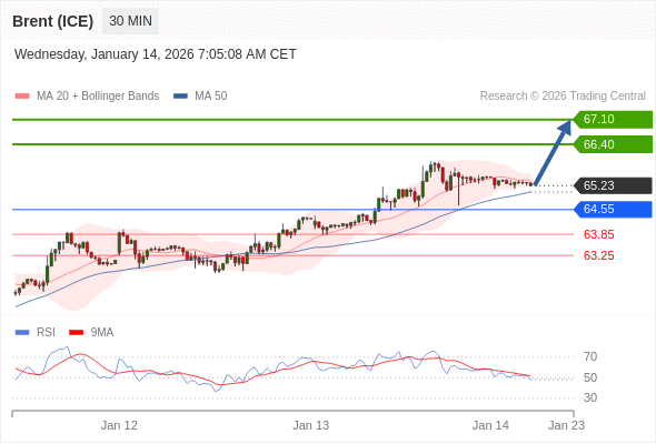 在 64.55 之上,看涨,目标价位为 66.40 ,然后为 67.10 。