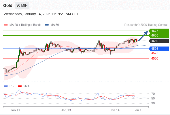 在 4595 之上,看涨,目标价位为 4655 ,然后为 4675 。