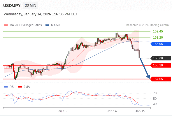 在 158.95 之下,看跌,目标价位为 158.10 ,然后为 157.55 。