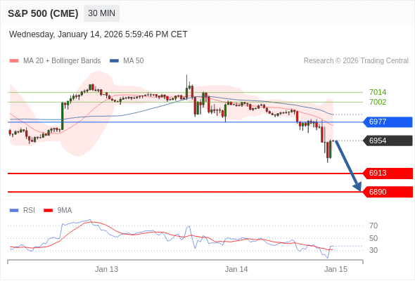 在 6977 之下,看跌,目标价位为 6913 ,然后为 6890 。
