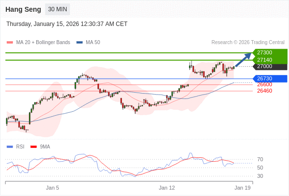 在 26730 之上,看涨,目标价位为 27140 ,然后为 27300 。