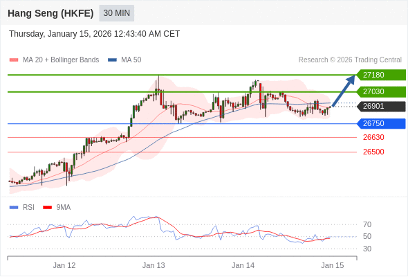在 26750 之上,看涨,目标价位为 27030 ,然后为 27180 。