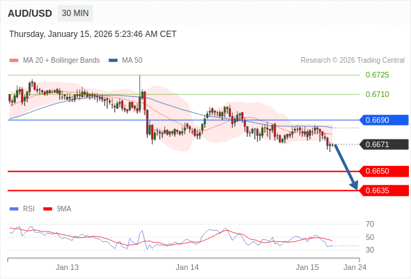 在 0.6690 之下,看跌,目标价位为 0.6650 ,然后为 0.6635 。