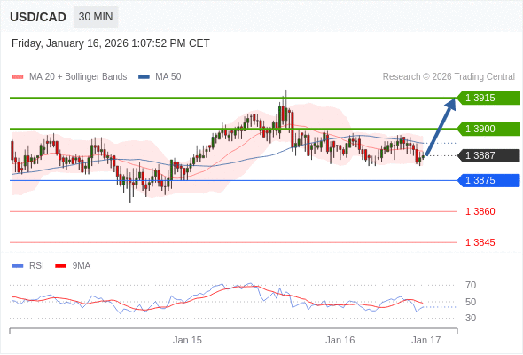在 1.3875 之上,看涨,目标价位为 1.3900 ,然后为 1.3915 。