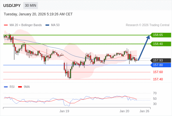 在 157.80 之上,看涨,目标价位为 158.40 ,然后为 158.65 。