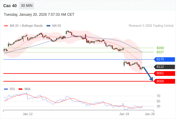 Cac 40 当日内: 下跌趋势。