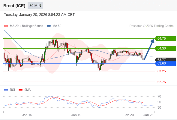 在 63.60 之上,看涨,目标价位为 64.30 ,然后为 64.75 。
