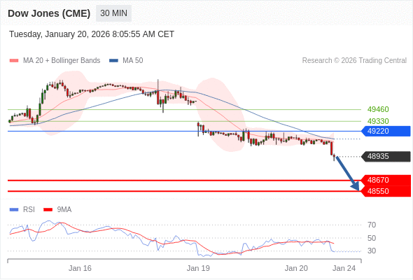 在 49220 之下,看跌,目标价位为 48670 ,然后为 48550 。