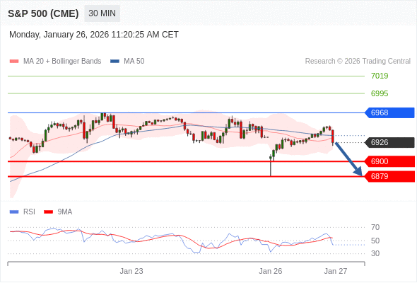 美国标普500指数期货 (H6) 当日内: 短期关键阻力位在6968。