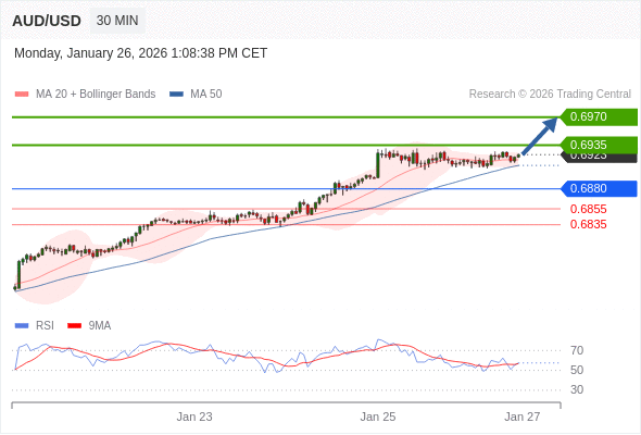 在 0.6880 之上,看涨,目标价位为 0.6935 ,然后为 0.6970 。