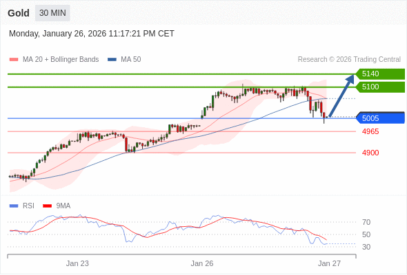 交易策略: 在 5005 之上,看涨,目标价位为 5100 ,然后为 5140 。