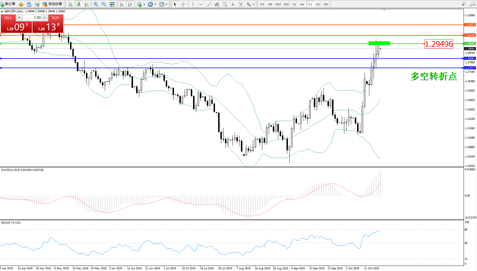 备选策略:1.29496上方看涨,目标1.30185、1.31073