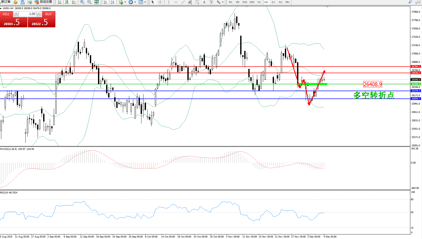 技术点评:高位震荡下行后得到支撑开始缓慢上扬,正视图突破布林带指标中轨附近压制节点,且布林带指标呈收口走势中,MACD指标0轴下方空头区域持续震荡开始有回升态势,RSI指标处于50均衡线下侧弱势徘徊中;