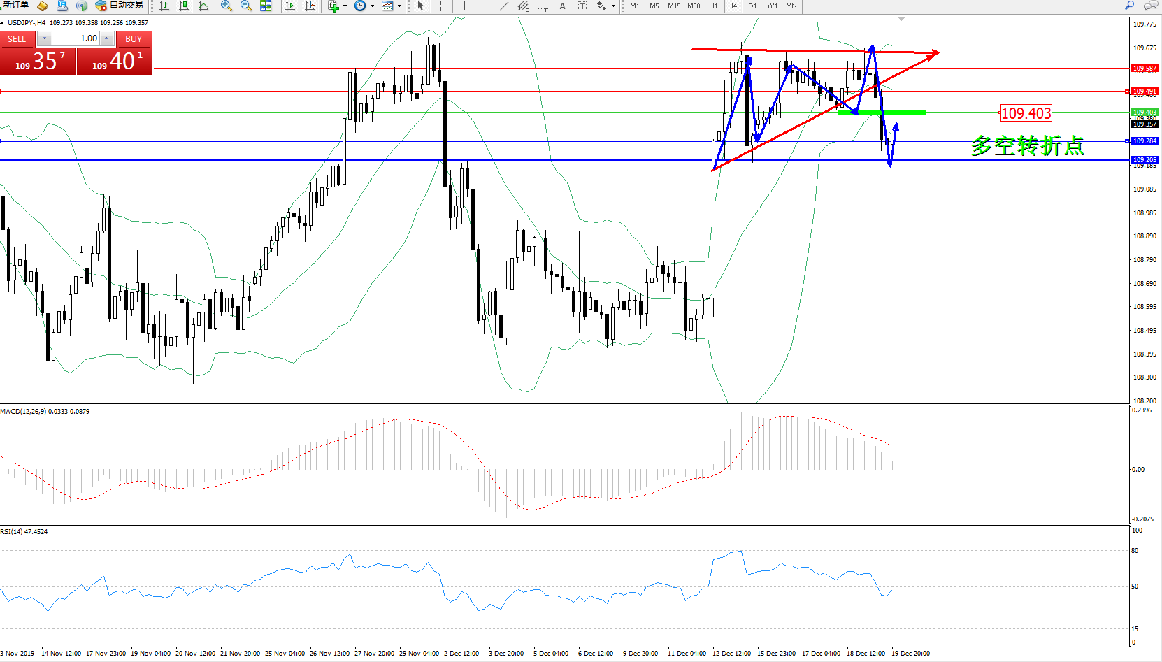 交易策略:109.403下方看跌,目标109.284109.205