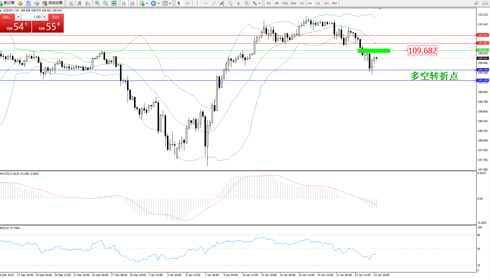 交易策略:109.682下方看跌,目标109.336109.150