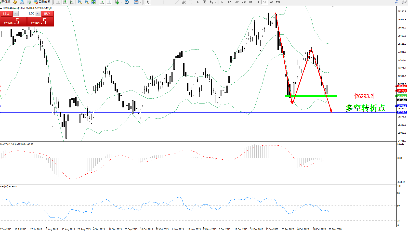 香港恒生指数228日(周五)收盘下跌648.69点,跌幅2.42%,报26129.93点;恒指低开低走,26000点一度失守,午后恒指窄幅震荡。新冠肺炎疫情继续在海外扩散,担忧国际经济受压,致使全球股市集体大跌。亚太股市收盘全线大跌。港股主要股指全日低迷,大幅低开后盘中持续羸弱。行业板块近乎全线下跌,蓝筹权重股集体下泄。肺炎疫情给股票市场带来恐慌加剧。主板成交量放大至1681.93亿港元,港股通净流入46.9亿港元。目前港股估值在全球市场范围属于低估值洼地区域,纵向来看港股估值处历史低位,长期投资价值依然非常高。随着疫情得到有效抑制,同时有托底政策持续加码,再叠加外资、银行理财、保险养老金等中长期资金持续流入,市场将很快重新进入上行轨道。