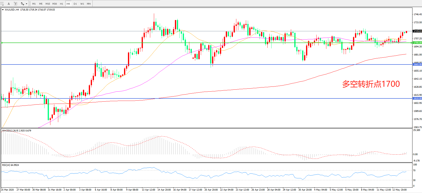 4月以来,金价在冲击1800美元未果后, 于1700美元附近反复震荡,但长期走失是乐观的,在短期震荡回落的时候就是买入黄金的好时机
