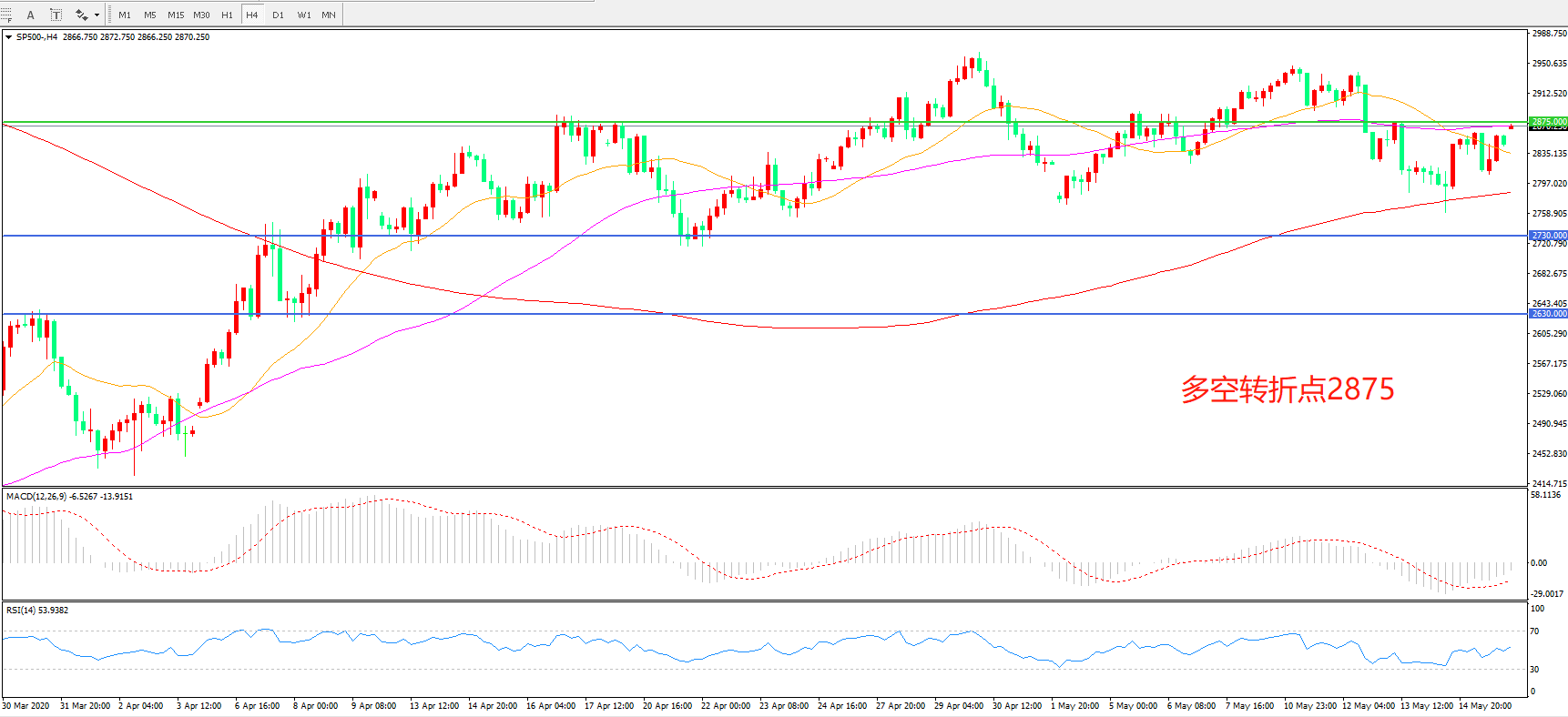标普500 SP500   4小时图