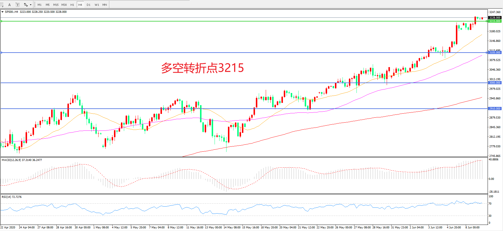 多空转折点:3215.00