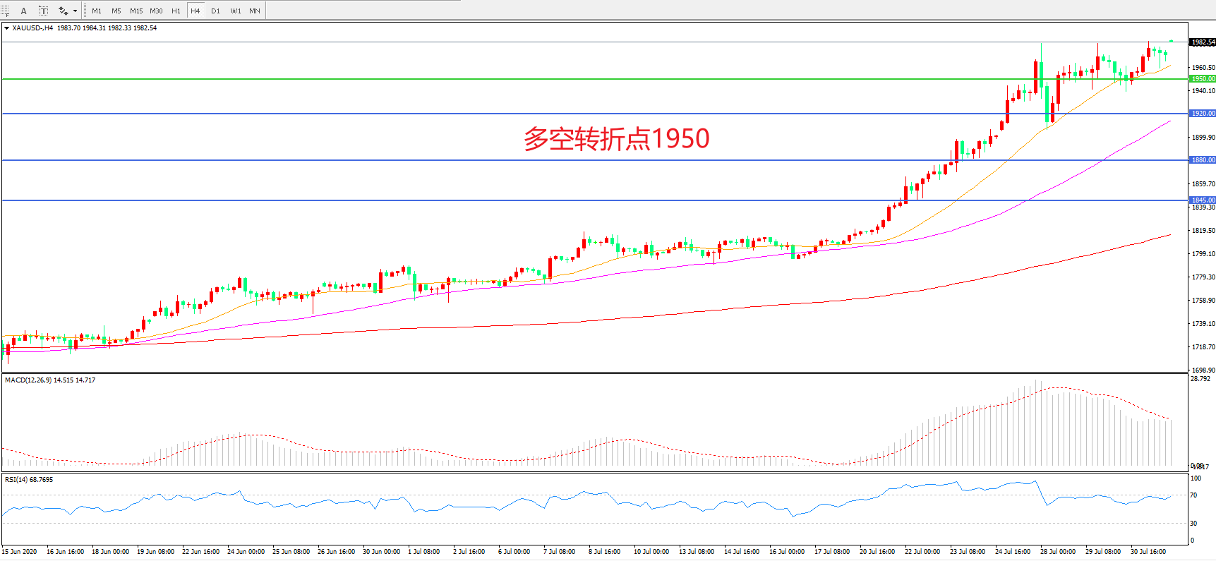 交易策略:在1950.00之上看涨,目标2000.00   2030.00