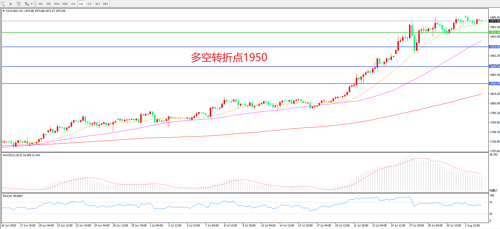 多空转折点:1950.00