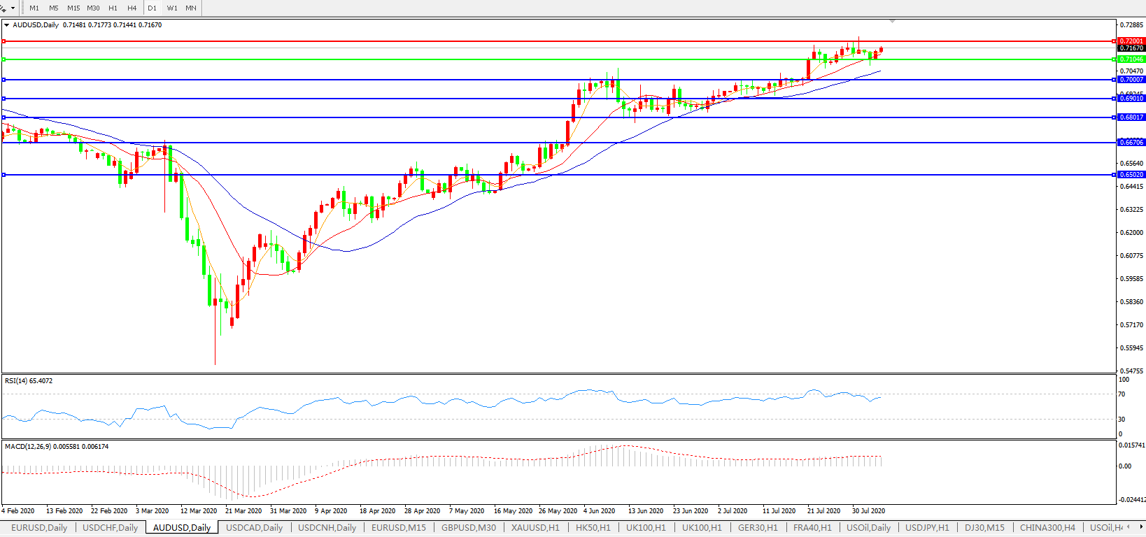 交易策略:0.7000上方看涨,目标0.7100、 0.7200